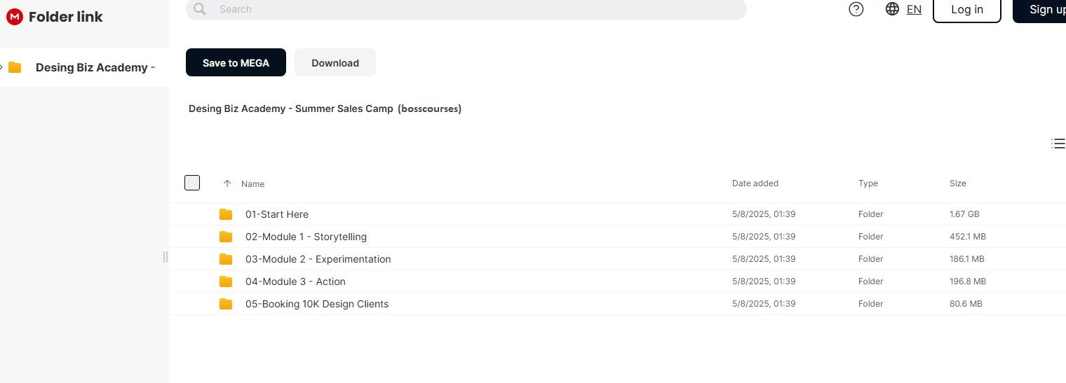 Access the exclusive Design Biz Academy Summer Sales Camp through our secure Mega.nz platform with lifetime access to proven design business strategies.
