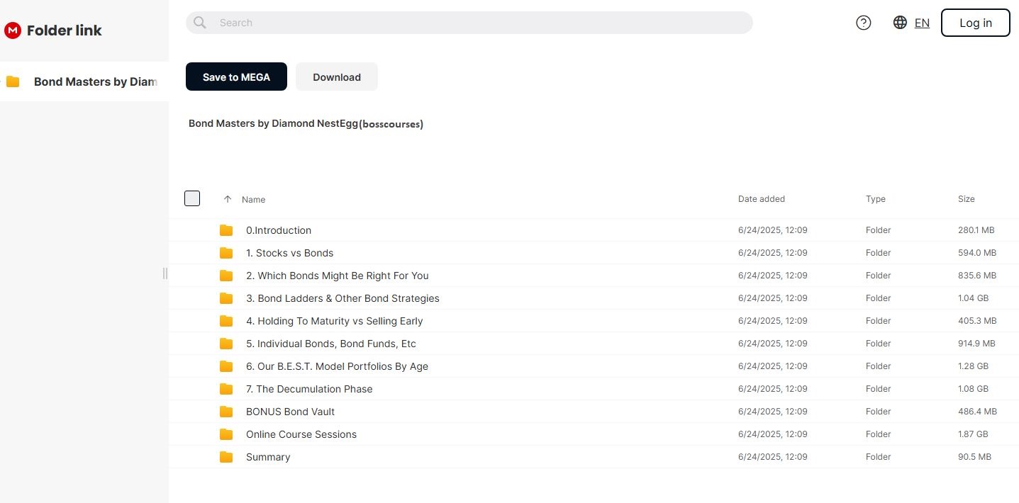 Access the complete Bond Masters program by Diamond NestEgg through our secure Mega.nz platform, offering lifetime access to comprehensive bond investment training.