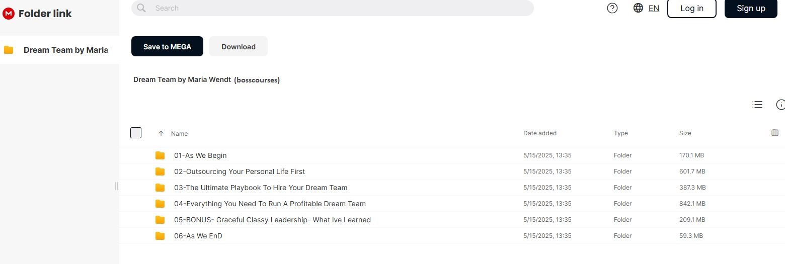 Access Maria Wendt’s exclusive team building program through our secure Mega.nz platform with lifetime access to advanced team management techniques.