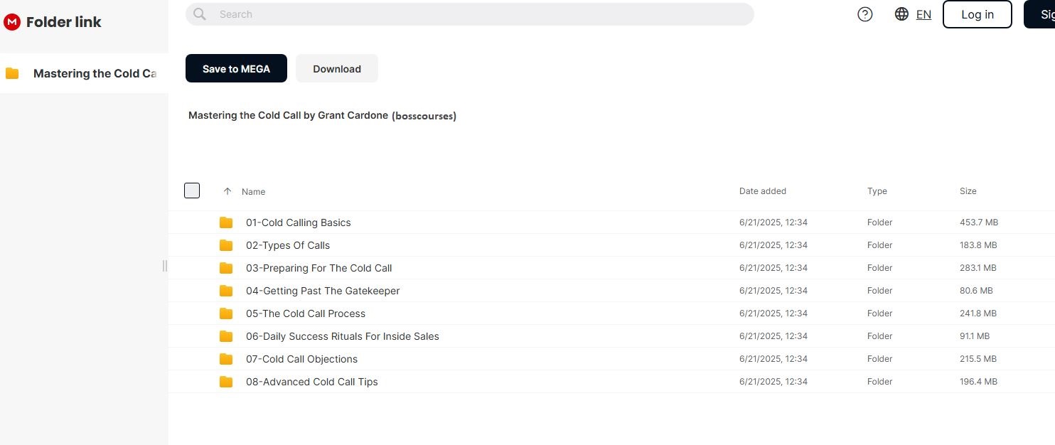 Access Grant Cardone’s complete cold calling mastery program through our secure Mega.nz platform with lifetime access to proven sales techniques and strategies.