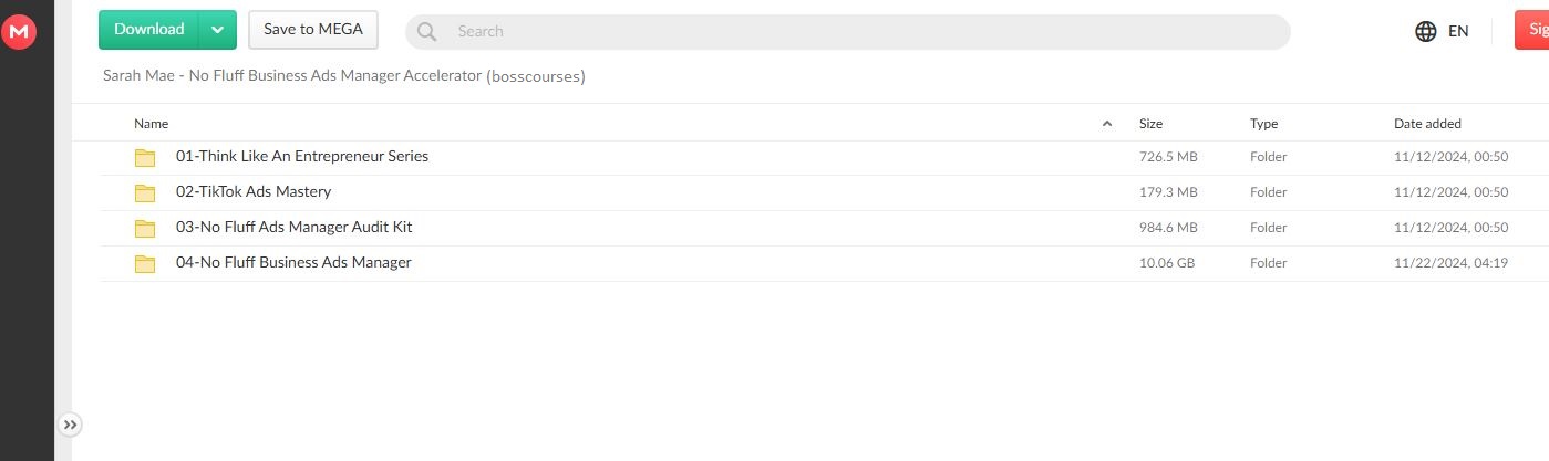 Access Sarah Mae Ives’ comprehensive Facebook Ads management program, available for immediate download through Mega.nz. Master the art of running profitable ad campaigns and building a successful ads management business.