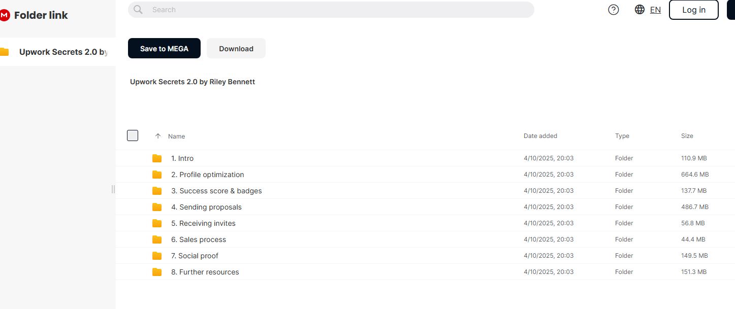 Access Riley Bennett’s advanced Upwork training program through our secure Mega.nz platform with lifetime access to freelance optimization techniques.